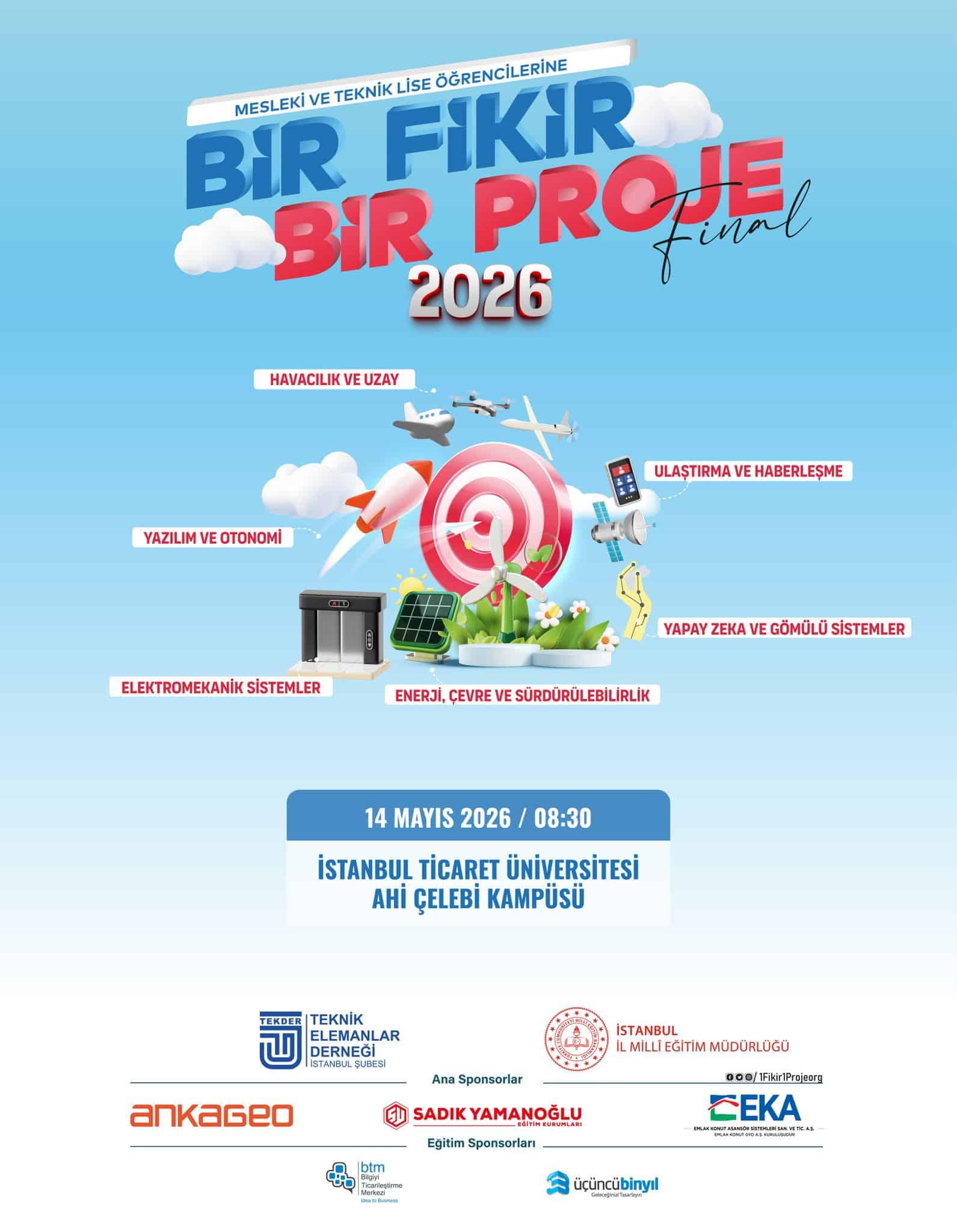 İstanbul Milli Eğitim Müdürlüğü ile TEKDER İstanbul Şubesi iş birliğiyle her yıl düzenlenen “Bir Fikir Bir Proje” yarışmasının bu yılki final programı için sizi aramızda görmekten mutluluk duyarız.